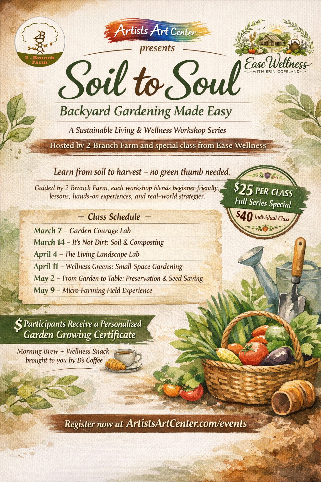 🌱 Soil to Soul - Backyard Growing Made Easy for Everyday People: Grow Smart | A Sustainable Living & Wellness Workshop Series This is a six-session, hands-on workshop series designed to help everyday households move from curiosity to confidence in growing food, supporting wellness, and building real-life skills at home. Led by 2 Branch Farm with […]