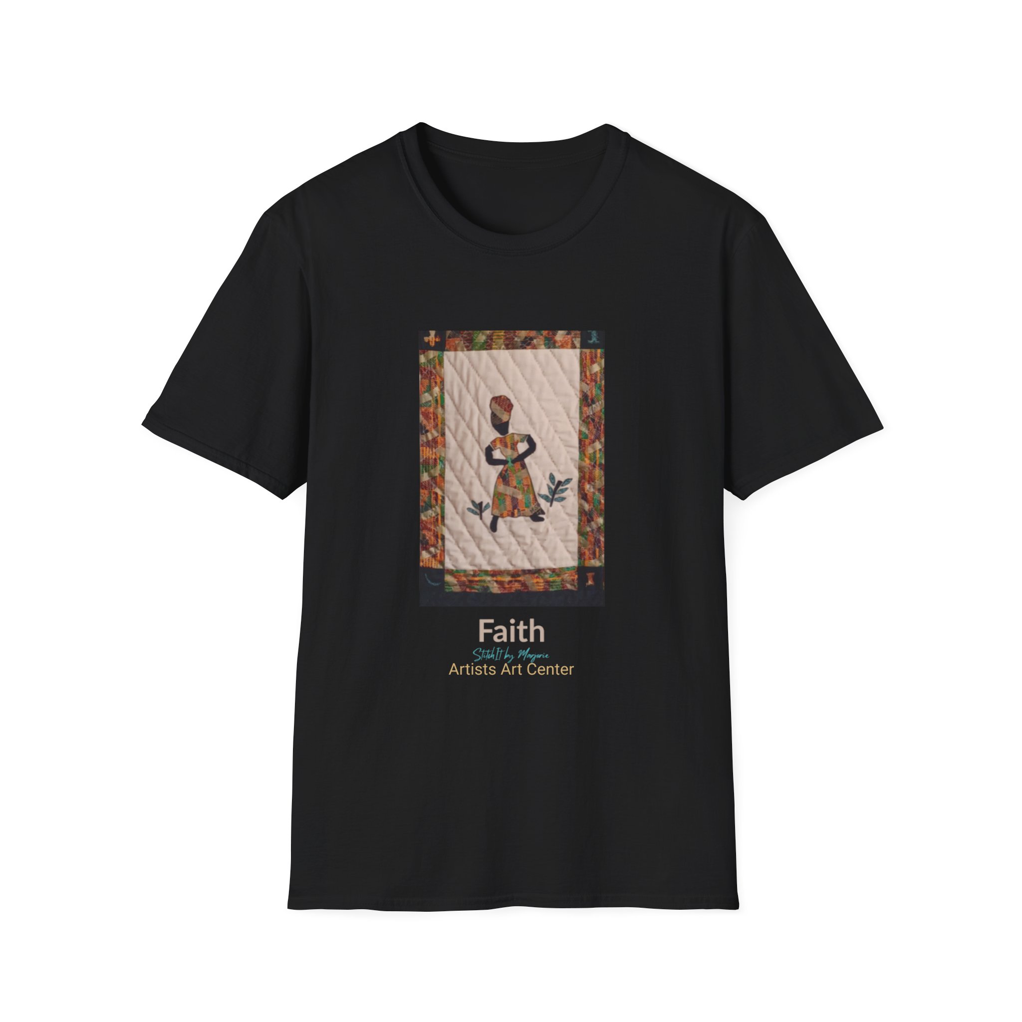 Celebrate belief and inner strength with our exclusive Artists Art Center T-Shirts! Featuring “Faith” from the Dancing Ladies collection by StitchIt Designs, this wearable art tee features a graceful silhouette wrapped in vibrant patchwork, symbolizing unwavering trust and spiritual resilience.